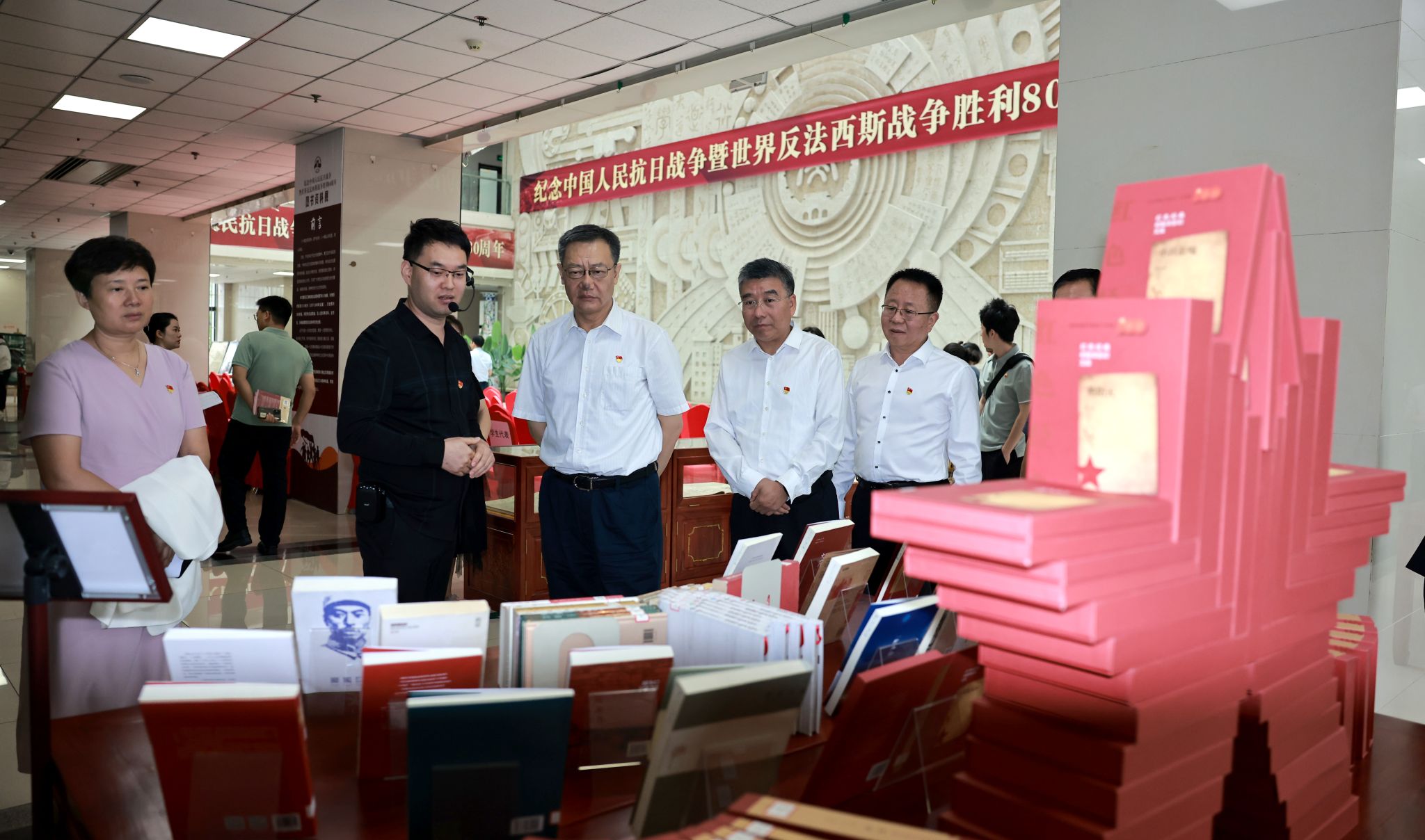仪式结束后,与会人员共同参观了展览。本次展览集中展出了精选抗战主题图书800余册、1937-1945年刊发的报纸18册3000余份、历史照片500余幅以及抗战歌曲、名人题词等资料,全景式、多维度地再现了那段艰苦卓绝而又光辉伟大的斗争历史。