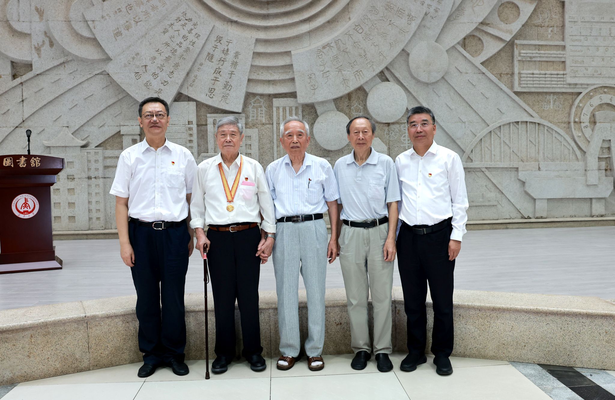 开展仪式上,陈志坚为老同志代表——我校离休干部贾辉佩戴“中国人民抗日战争胜利80周年”纪念章,并致以崇高敬意与诚挚问候。青年学生代表为贾辉老师献上鲜花,以表达对为民族独立和解放事业作出卓越贡献的老前辈的深深敬意。陈志坚向青年教师及学生代表赠送了《抗日战争与中共崛起》《抗战家书:我们先辈的抗战记忆》等主题图书,勉励师生深入阅读历史、感悟精神内核、践行时代使命,将爱国情怀融入工作和学习中。