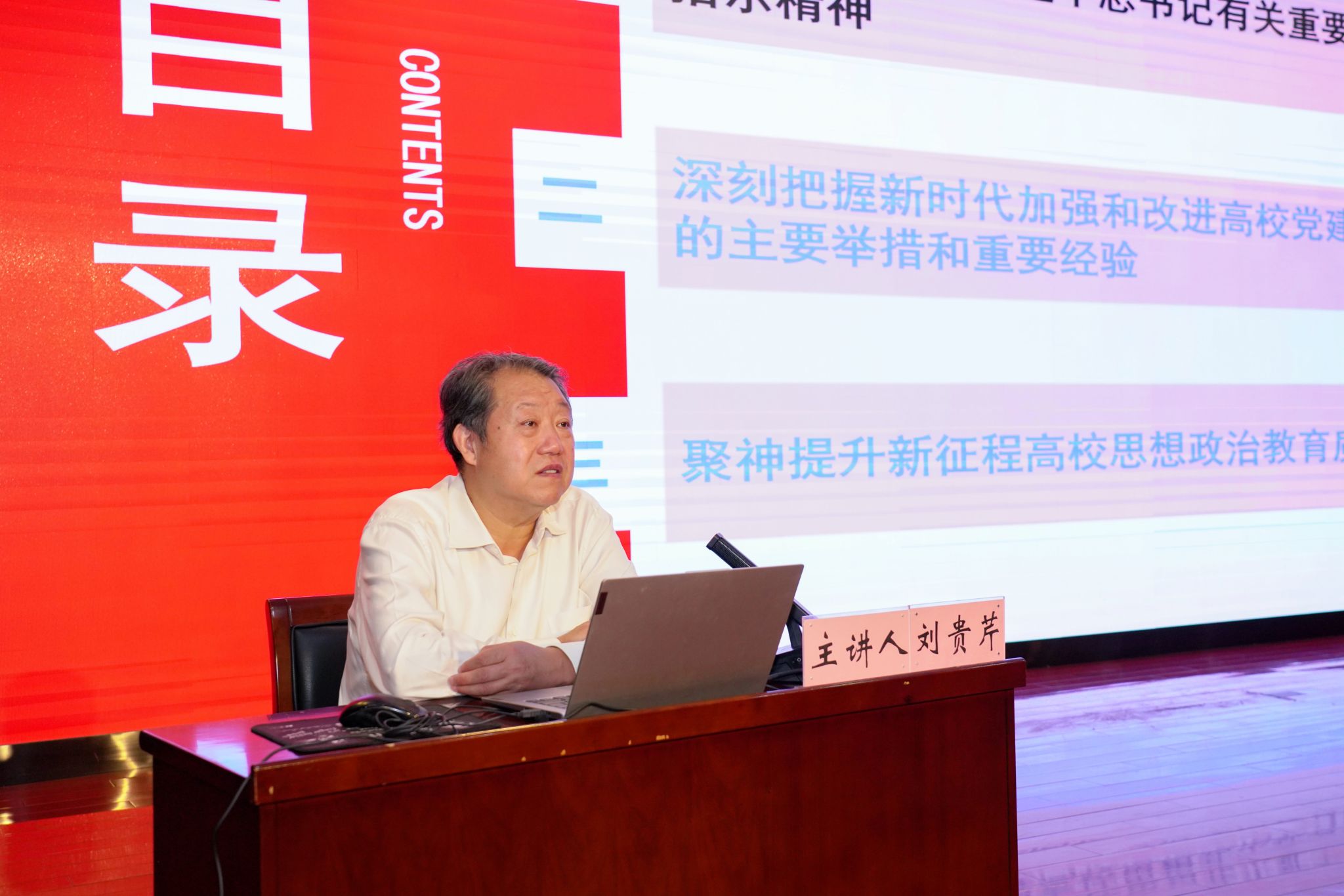 刘贵芹深入解读了习近平总书记有关教育的重要论述,梳理了新时代加强和改进高校党建和思政教育的主要举措和重要经验,并从七个方面提出了提升新征程高校思想政治教育质效的方法举措。他指出,新时代新征程,高等教育战线要不忘为党育人、为国育才初心使命,心怀“国之大者”,深入贯彻习近平总书记关于教育的重要论述,全面贯彻党的教育方针,充分发挥思想政治工作生命线作用,切实加强和改进高校思想政治教育,教育引导学生努力成为让党放心、爱国奉献、担当民族复兴重任的时代新人,回答好“教育强国,高校何为”的时代命题。