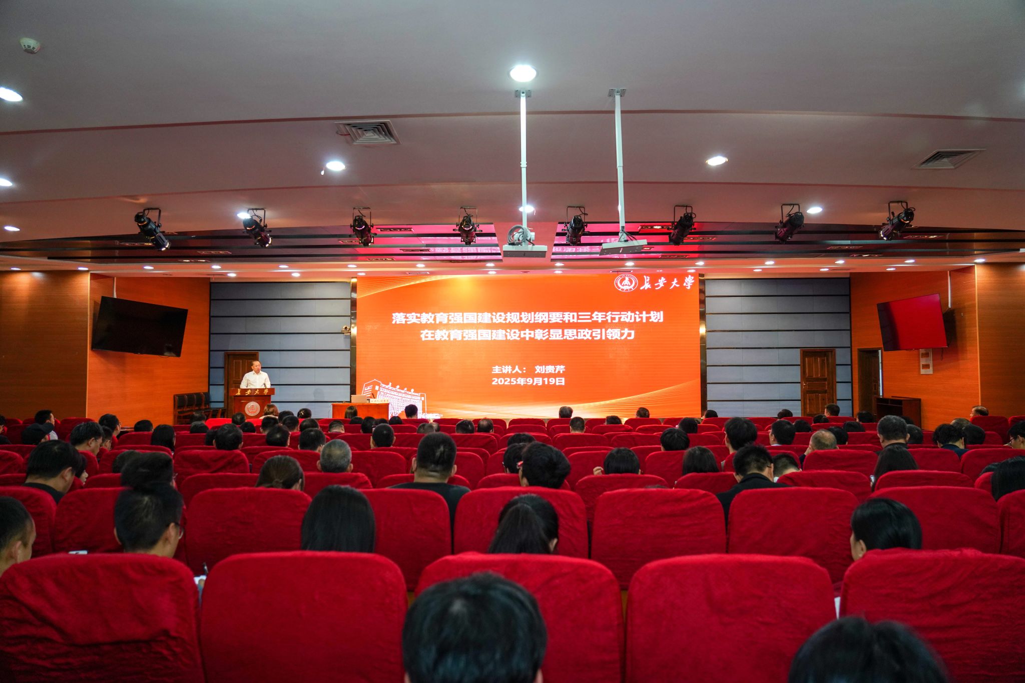 9月19日,学校在北校区北辰楼会议中心二层报告厅举办专题讲座。北京化工大学党委书记、教育部高等学校思想政治理论课教学指导咨询委员会副主任委员刘贵芹应邀作题为《落实教育强国建设规划纲要和三年行动计划,在教育强国建设中彰显思政引领力》的专题报告。校长李树涛主持报告会。校党委副书记徐引正、李文雄,校属各单位相关负责人、辅导员代表、各教工党支部负责人、马克思主义学院教师代表、校青马骨干等500余人聆听报告会。