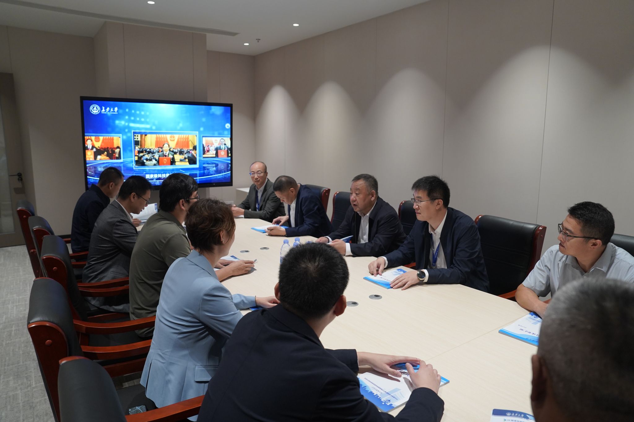 揭牌仪式后,陈建勋一行考察了长安大学深圳研究院办公场地,参观了深圳市车路云产业孵化运营中心,并与20余位深圳校友企业代表举行座谈交流会,就深圳研究院建设发展、深化校企地合作、推动产学研融合等方面进行了深入交流。
