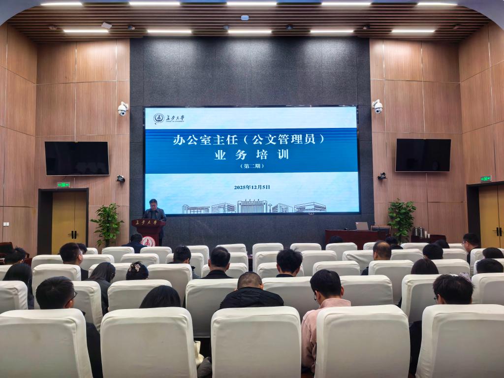 为深入学习贯彻党的二十届四中全会精神,不断提升办公室工作人员的政治素养、理论水平和业务能力,12月5日上午,学校在北校区师生服务大厅第二报告厅举办二级单位办公室主任(公文管理员)业务培训第二期,各二级单位办公室主任、公文管理员及相关工作人员参加培训。