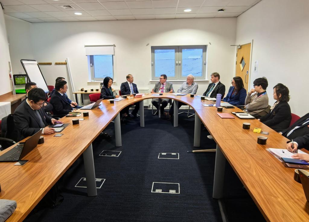 访问英国赫瑞瓦特大学期间,代表团与赫瑞瓦特大学校长Richard A. Williams、校务卿Steve McLaughlin、国际与合作事务副校长Mark Biggs等进行座谈交流,就推进两校中外合作办学、博士联合培养、国际科研合作等议题进行了磋商,显著推进了建筑环境与能源应用工程本科层次中外合作办学项目进展,推动两校合作向更深层次、更宽领域发展。